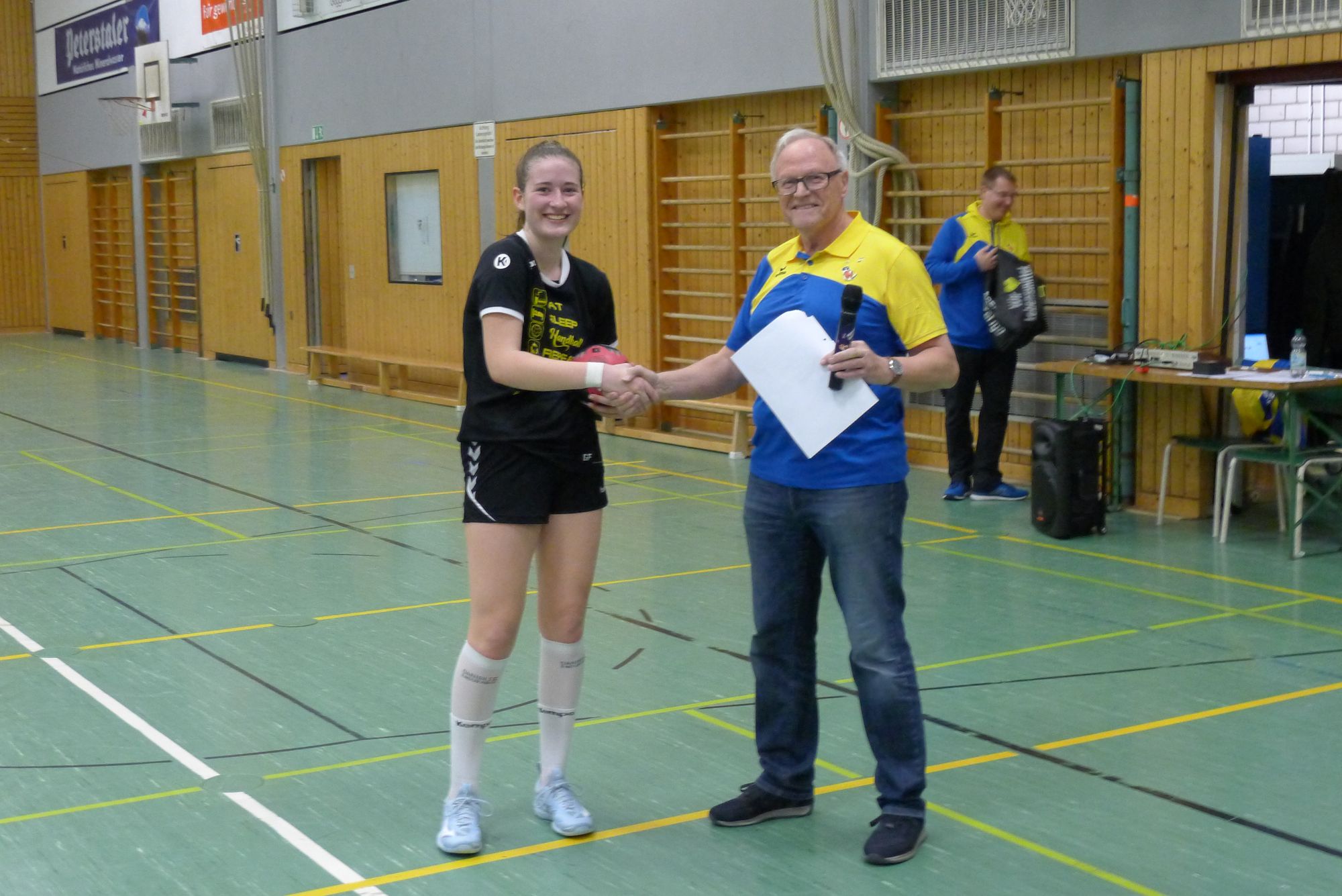 Rainer Förderer begrüßte seitens des Gastgebers die teilnehmenden Mannschaften und führte zusammen mit dem Jugendkoordinator der Panthers Sebastian Hartmann die Siegerehrung, in Vertretung vom Bezirksjugendausschuss-Vorsitzenden des Handballbezirkes Rastatt Rainer Lauppe, durch. Als Dankeschön für die Teilnahme wurde jeder Mannschaft einen Handball, der von Reiner